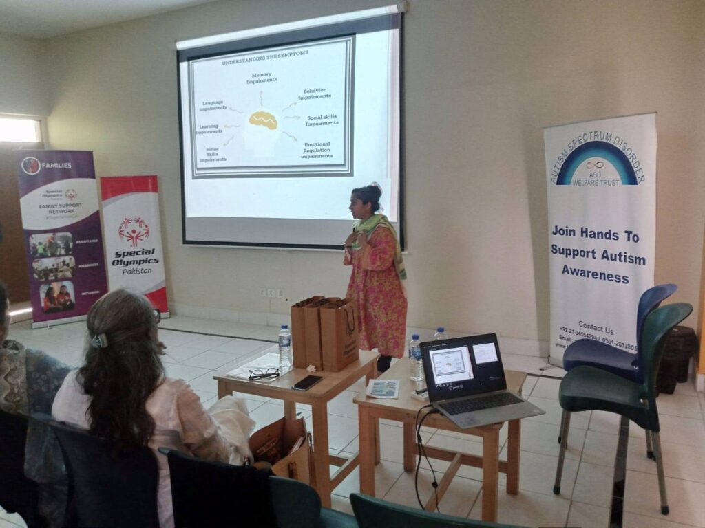 Ms. Sadia Jawaid (Ass. Cli. Psychologist at ASDWT Karachi) conducted an Autism awareness session with the collaboration of Special Olympics Pakistan (SOP) at C-Arts Adult and ADHD Center, Korangi, Karachi. A very positive response was given by the parents of individuals with neurodiversity. This session was conducted to mark Autism awareness month 2025 in which the topic Autism and it’s Management was presented among parents of special need children. It was concluded with an interactive Q/A session with the parents. ASDWT is grateful to Ms. Farah (Coordinator SOP) of for the invitation & arranging this program for awareness purpose.